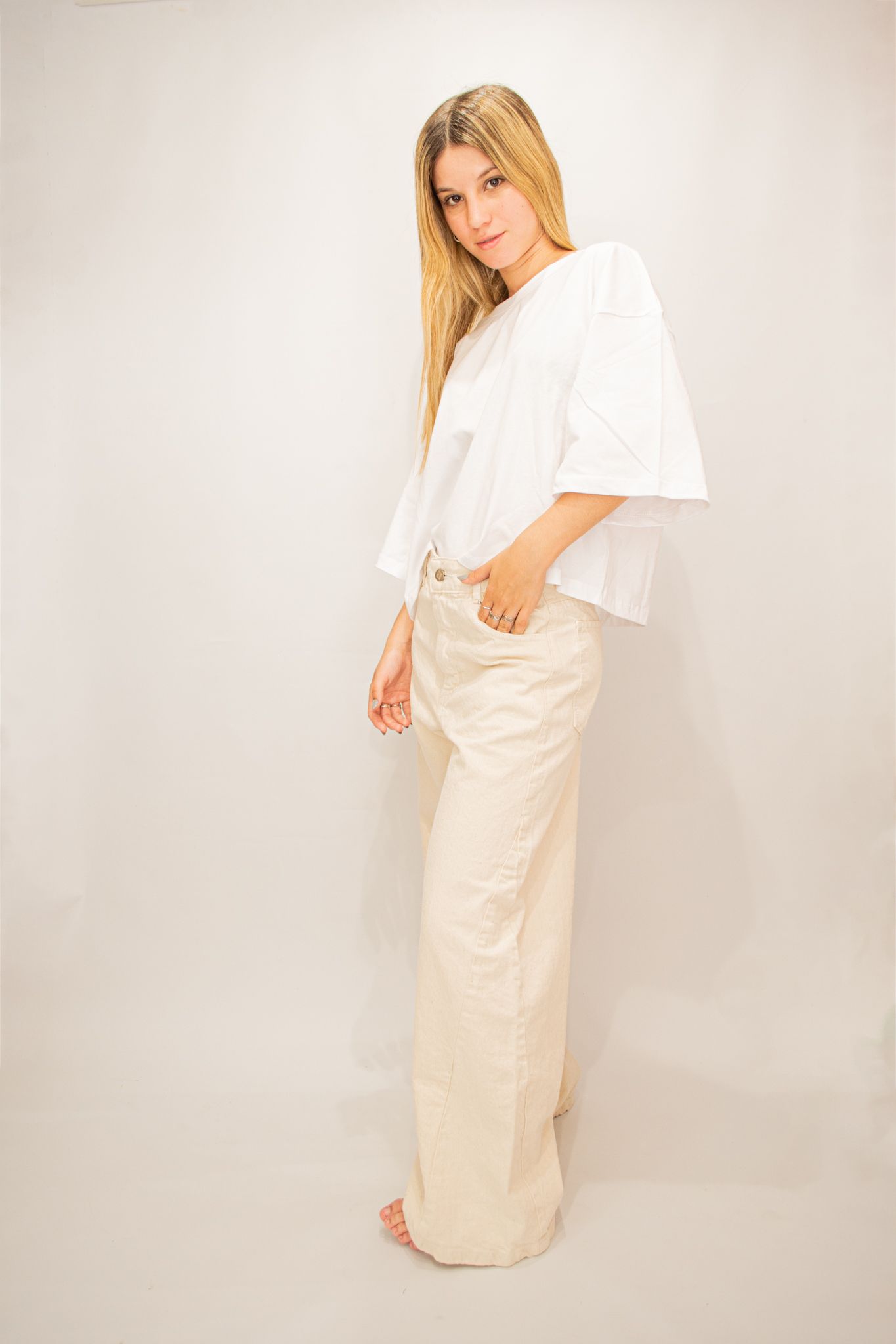 JEAN WIDE LEG 100% ALGODÓN CINCO BOLSILLOS CON RECORTE LATERAL.